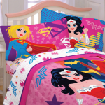 Infelizmente no Brasil, o mercado ainda atende mal ao público feminino infantil fã de quadrinhos, então para personalizar o quarto da sua pequena heroína você vai ter que improvisar um pouco. Apostar em adesivos ou painéis decorados pode ser uma boa, na parede ou na porta dos armários. Por exemplo um adesivo ou painel da Mulher Maravilha ou da Super Girl podem passam a fazer parte da decoração que pode ser completada com outros detalhes.